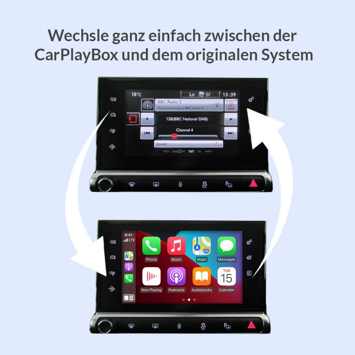 This video shows a typical CarPlayBox installation so you know exactly what to expect. Every vehicle comes with a custom step-by-step guide, easily accessible via the QR code inside the box. See how simple it is — no complex wiring, fully plug & play.