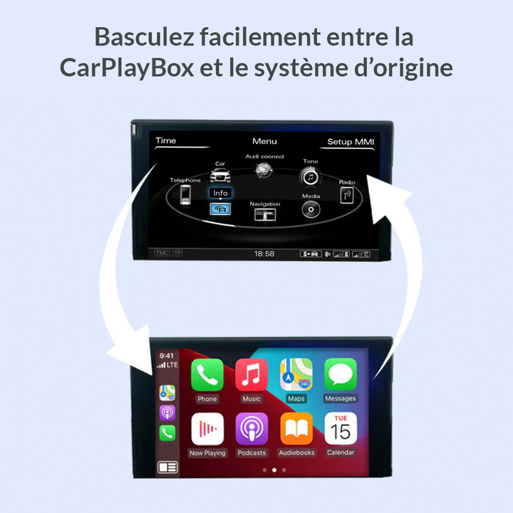 CarPlayBox is easy to install, placed discreetly behind the infotainment system, and starts automatically when you enter the car, without manual actions.